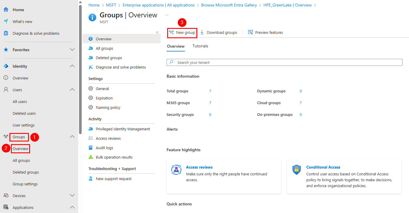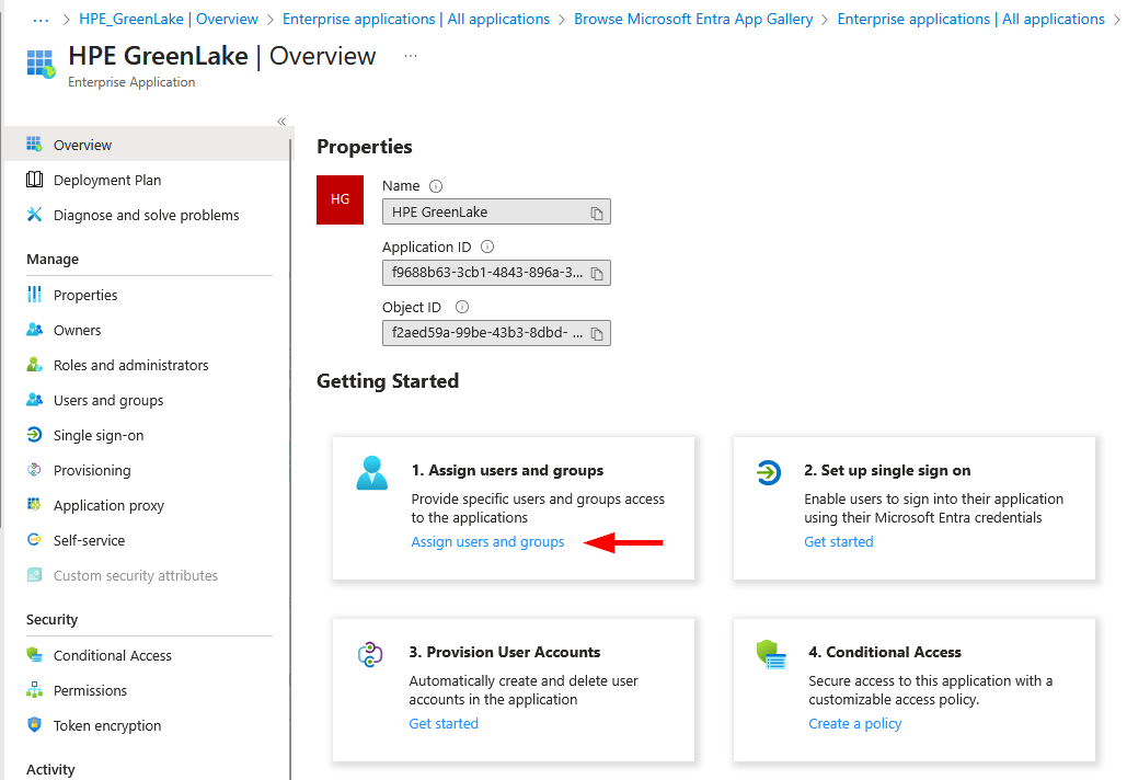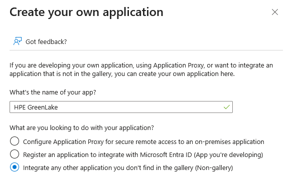 With the security group created, you can now proceed to register the HPE GreenLake application in Entra ID. This involves creating a custom SAML 2.0 enterprise application that will serve as the connection point between Entra ID and HPE GreenLake.