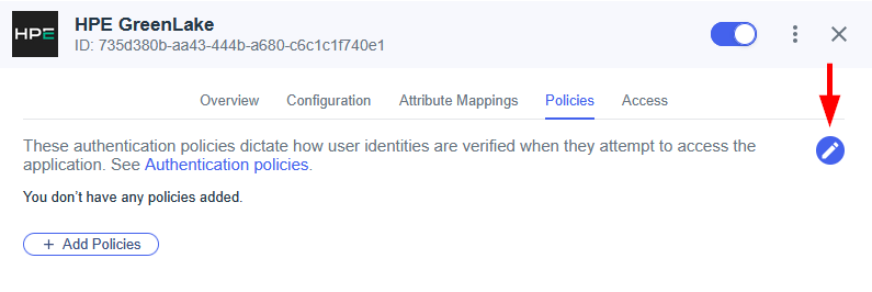 Click Save to apply the authentication policy to your HPE GreenLake application