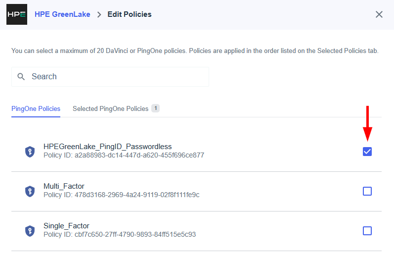 - The passwordless authentication policy is correctly assigned to the HPE GreenLake application