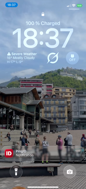 Note: If PingID is already configured on your device, you will skip the first-time device pairing process above and proceed directly to the push notification authentication step below.