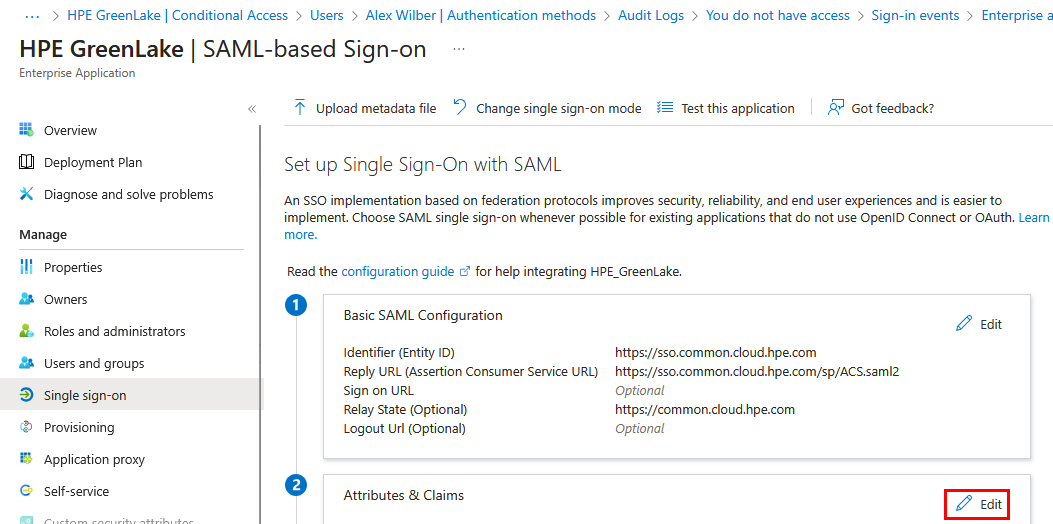 - Check certificate renewal: If your identity provider automatically rotates SAML signing certificates, ensure you update the certificate in HPE GreenLake before the old certificate expires to prevent service interruption