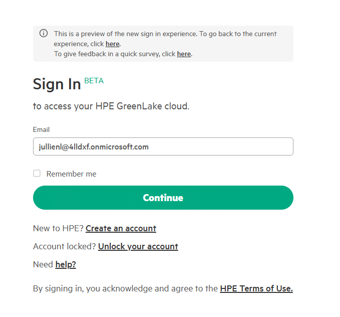 - You are redirected to HPE GreenLake and logged in with passwordless authentication