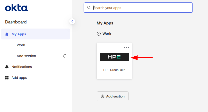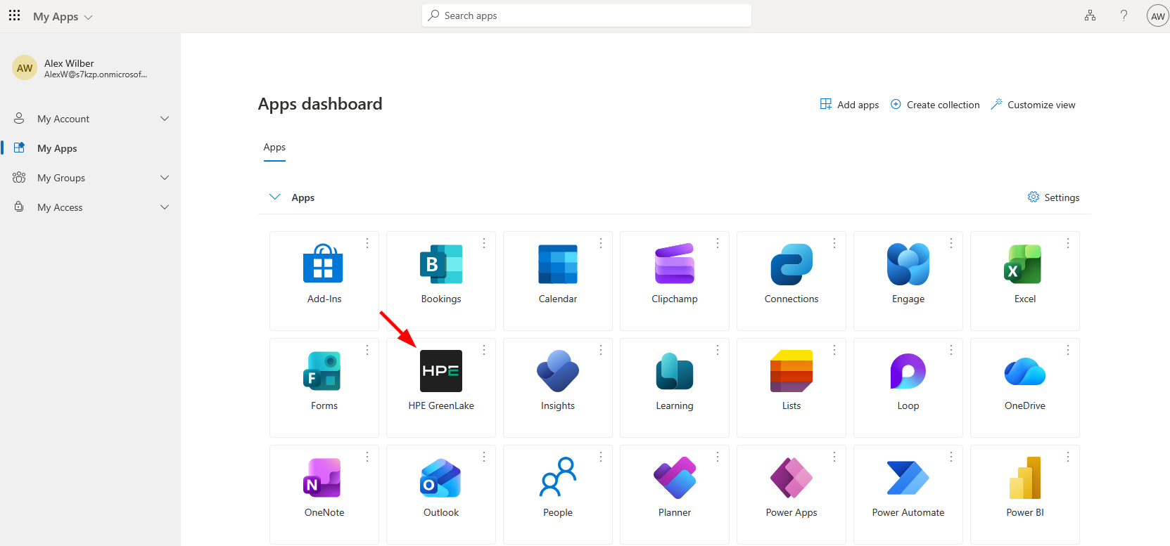 Once logged in, locate and click the HPE GreenLake application tile in your application dashboard