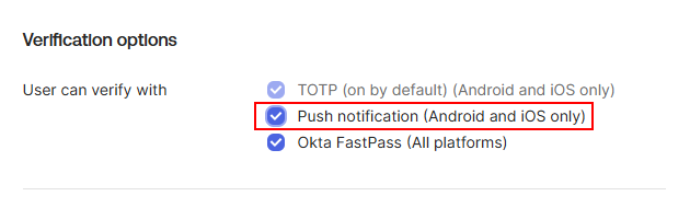 - Select Enable to allow users to enter TOTP codes as a backup method if push notification delivery fails