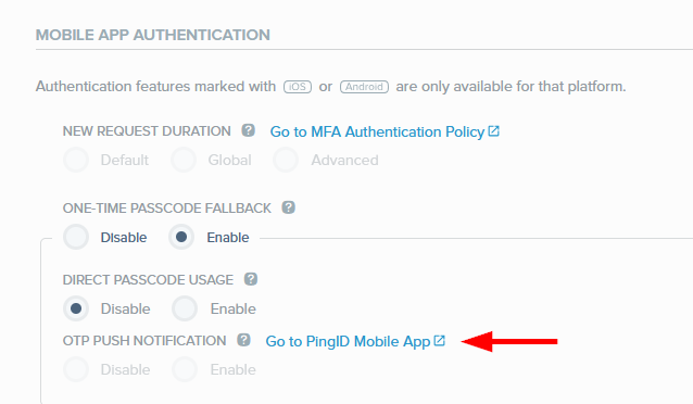 - Enable OTP Push Notification: Leave this option UNCHECKED to prevent OTP codes from being displayed in push notifications (maintains stronger security posture)