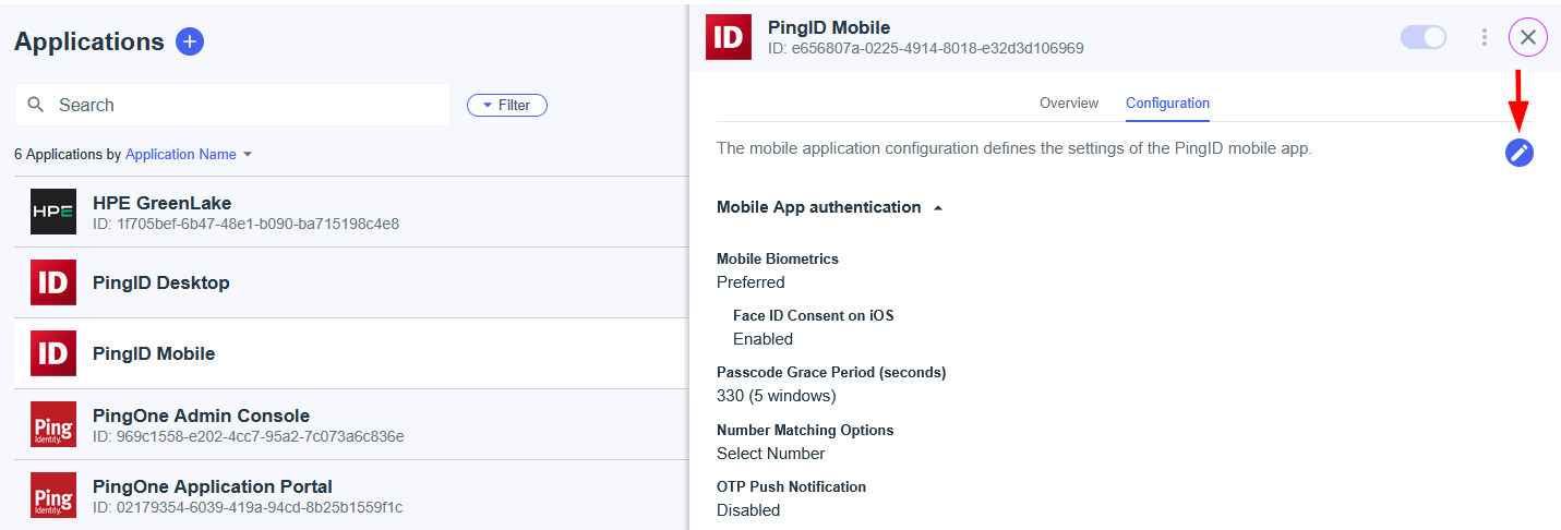 In the PingID Mobile App, select the Configuration tab and click the Edit button