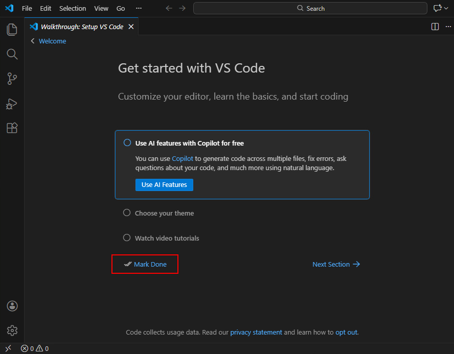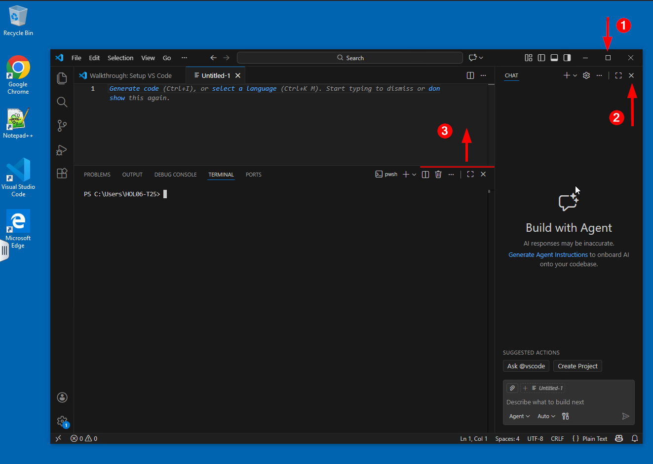 You’ll start by opening Visual Studio Code using the shortcut in the VM’s desktop: