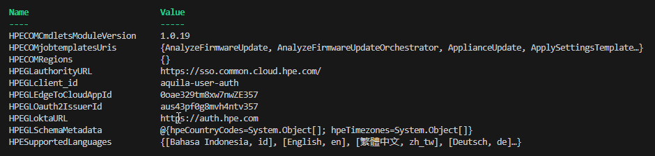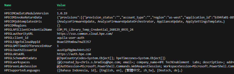Installed the HPECOMCmdlets library and authenticated to HPE GreenLake.