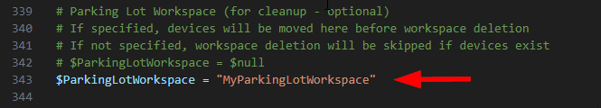 $ParkingLotWorkspace, at line 343, substitute the value with the name of your generated workspace. You may run$WorkspaceNameto retrieve the name you configured previously