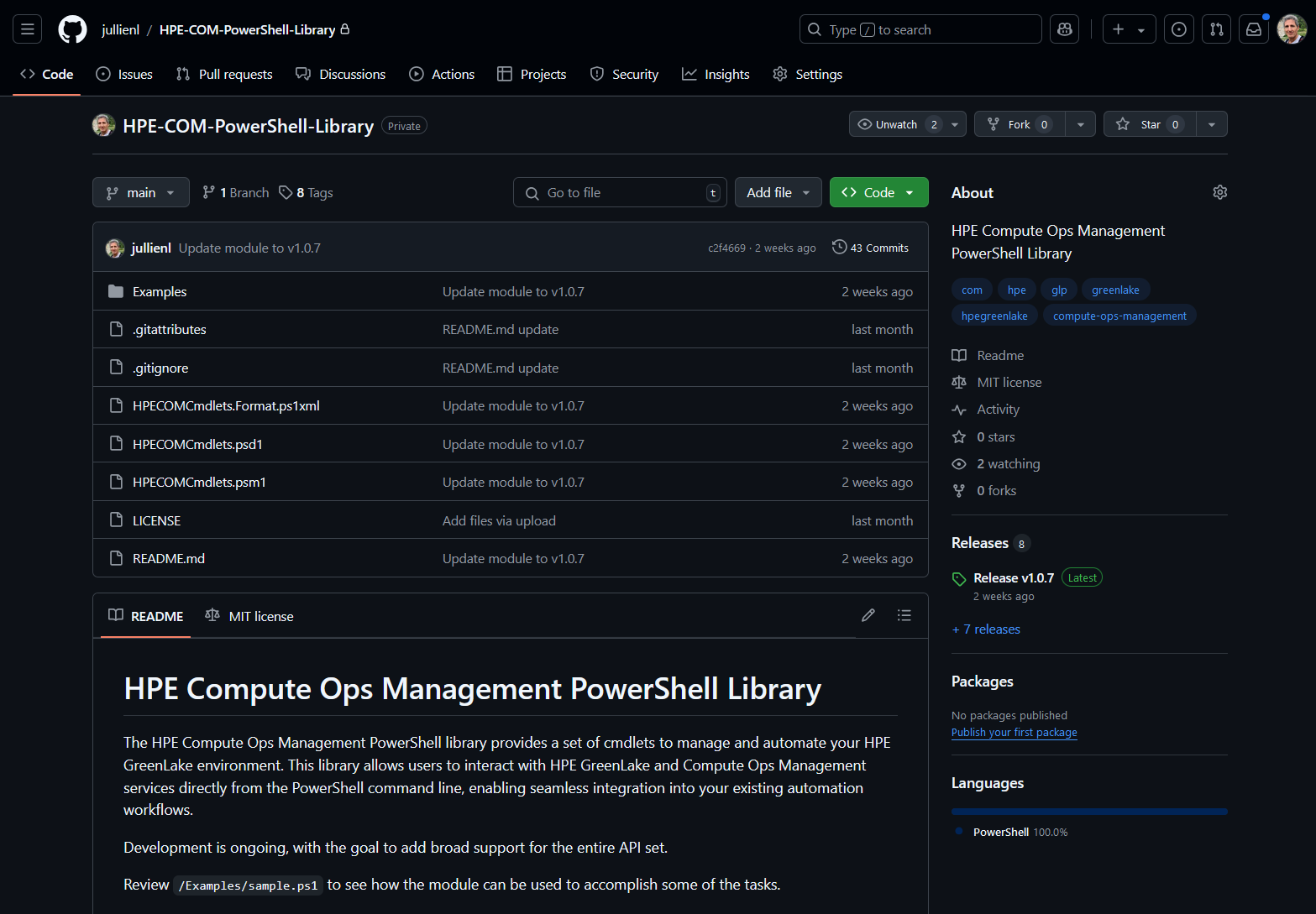 This project is also associated with a new public GitHub repository from our community contributor, Lionel Jullien from HPE. This repository is where the source code is developed. You can also track releases, report and view issues, and participate in discussions.