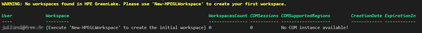 If this is your first time using HPE GreenLake, it is expected that no workspace will be available in your environment. If you already have one or more workspaces, there is no issue; you can still proceed with this lab.