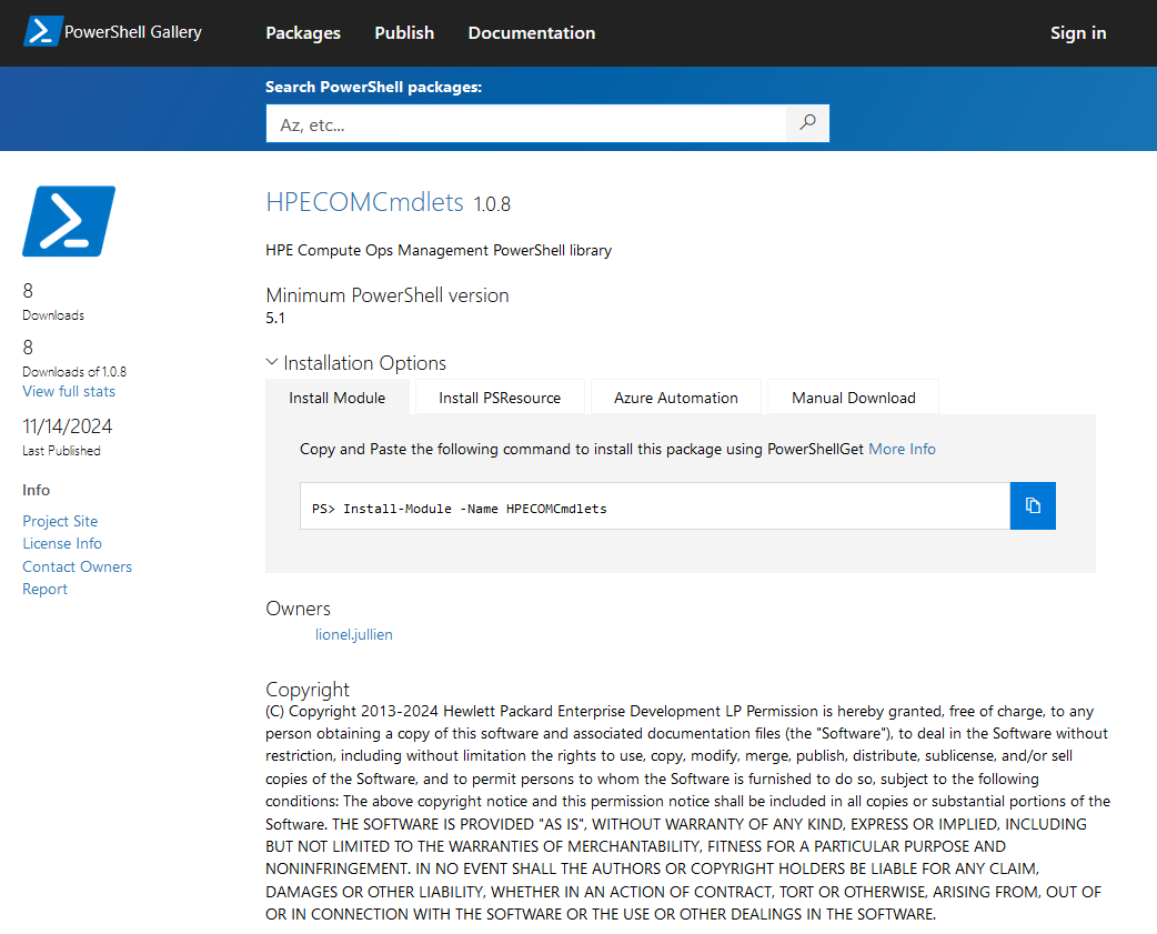 This module is available in the PowerShell Gallery under the name HPECOMCmdlets, following the naming convention used by most HPE modules.