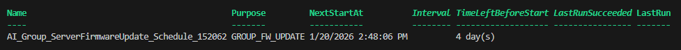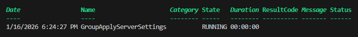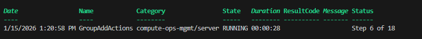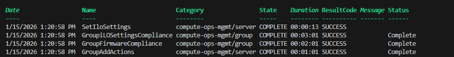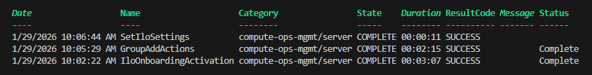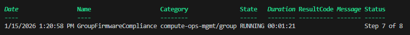 Get-HPECOMJob -Region $Region -Category Group -ShowRunning Get-HPECOMJob -Region $Region -Category Group -JobResourceUri $task.resourceUri