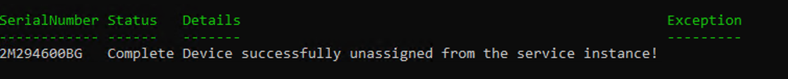 Get-HPEGLDevice -ShowRequireAssignmentThe expected response should show no more service and region information:
